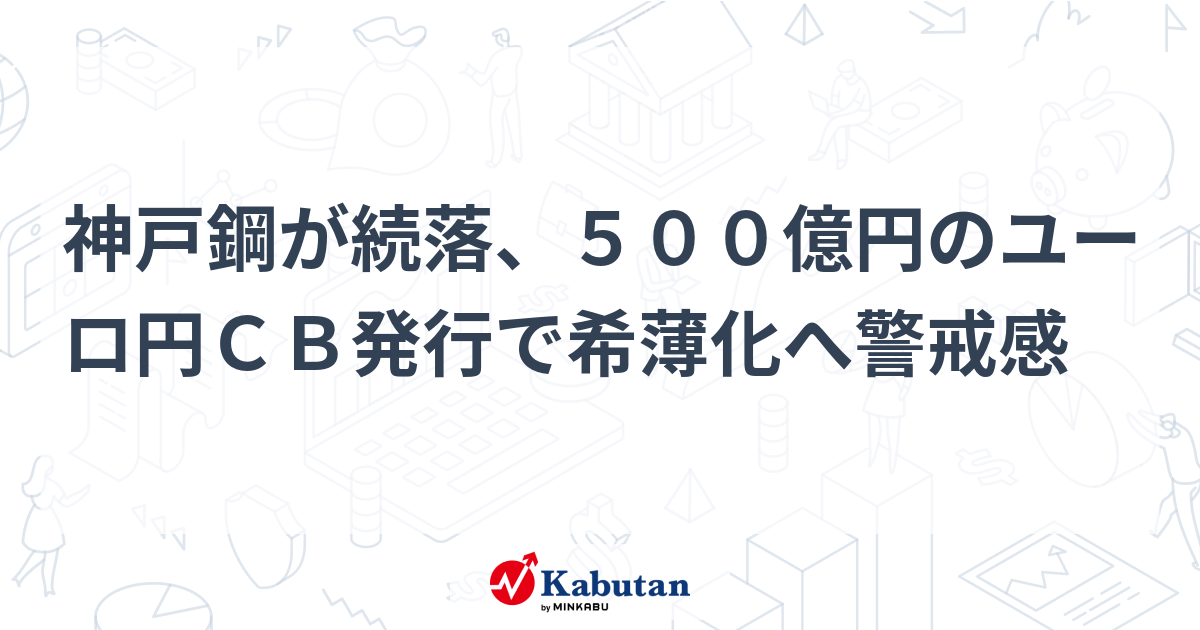 CB発行は不意打ちでした。時価総額を考えると500億円の発行金額は軽微。でも、そもそも好決算にもかかわらず、鉄鋼市況の下期懸念を材料に下落している状況です。